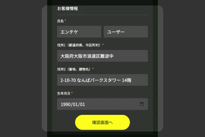 必要な項目を全て入力したら、「確認画面へ」を選択して次に進んでください。