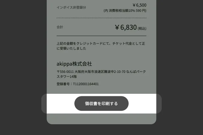 画面下部の「領収書を印刷する」ボタンを押すと、印刷プレビューが表示されます。お使いの端末からそのまま印刷・PDFの保存が可能です。